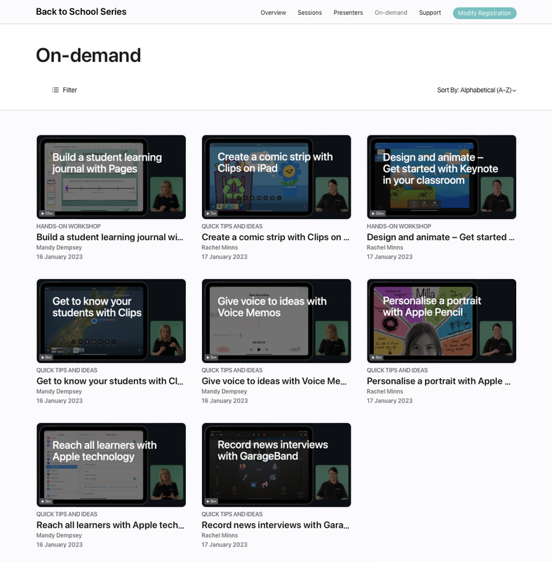 To access the on-demand videos - for those who are registered, click the link in any of the emails you received from Apple. Don't worry - even if you didn't register earlier - you can still register here for access: apple.co/backtoschool23 🙌🏻