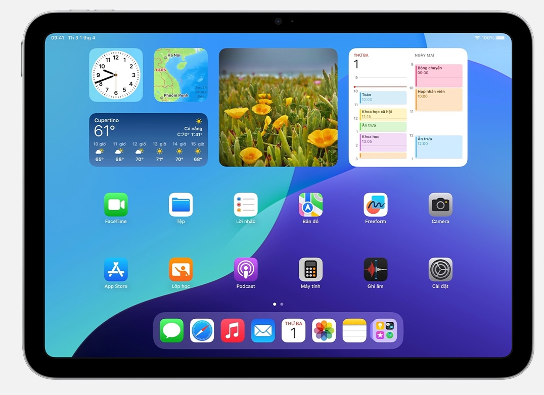 iPad tích hợp nhiều ứng dụng và tính năng, biến thiết bị thành sách, máy quay phim, trợ lý phòng thí nghiệm, bảng phác thảo và nhiều công cụ khác, đồng hành cùng bạn suốt ngày dạy học.