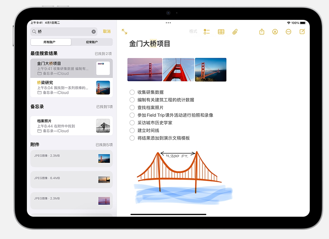 iPad 随附了很多 app 和功能,可以变身为图书、摄影机、实验室助理和画板等,在你整个在校期间为你提供全方位助力。