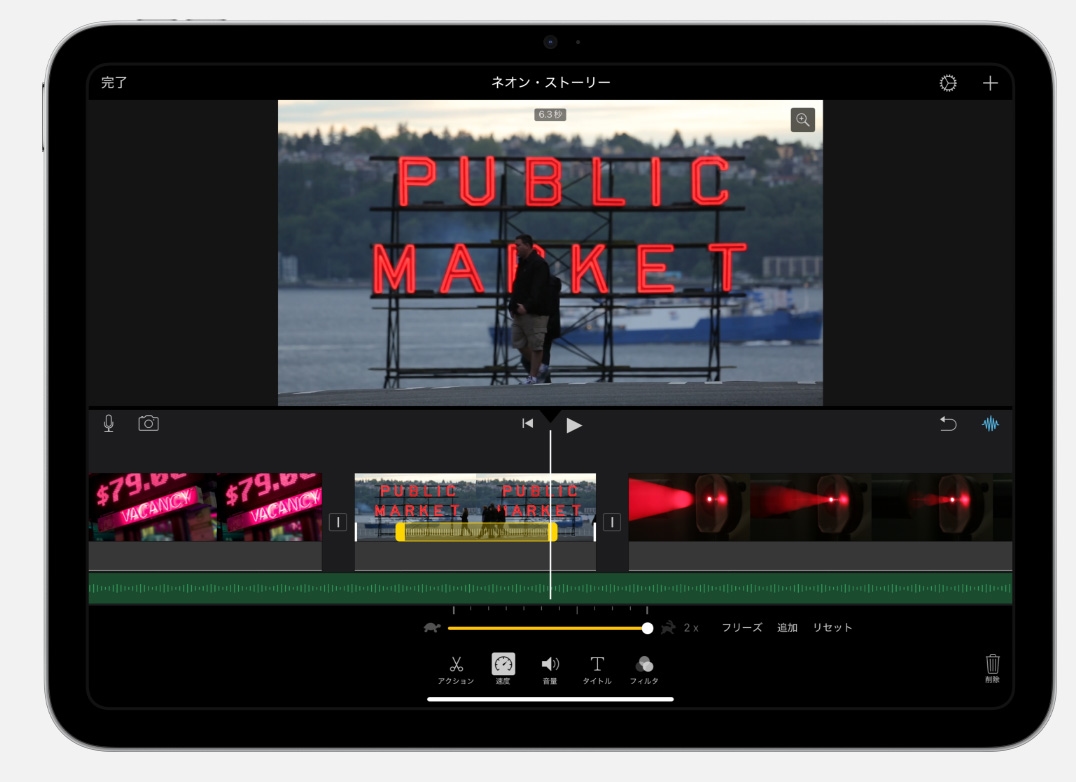 iMovieがあれば、授業に役立つ魅力的なムービーを作成して、様々なストーリーを伝えることができます。ムービーが完成したら、プレゼンテーションやオンライン上の学級新聞などに追加したり、ソーシャルメディアで共有しましょう。