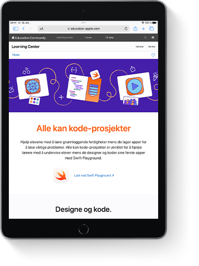 Utdanningsressursene Swift Playground og Alle kan kode ble laget for å være fleksibelt og nyttig i alle læringsmiljøer. De gir bred støtte, slik at lærerne ikke trenger å ha erfaring med koding for å undervise i Swift.
