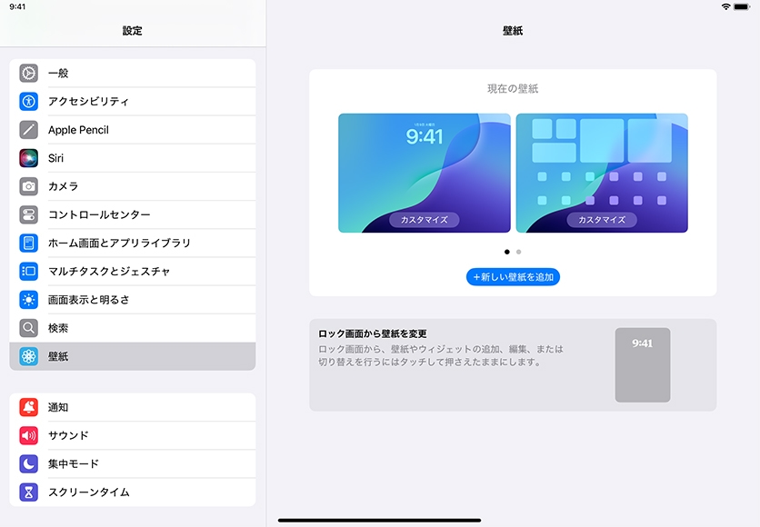 ホーム画面とロック画面の壁紙をカスタマイズすることもできます。「設定」を開いて「壁紙」をタップし、あらかじめ用意されている画像か、自分で撮った写真を1枚選びましょう。