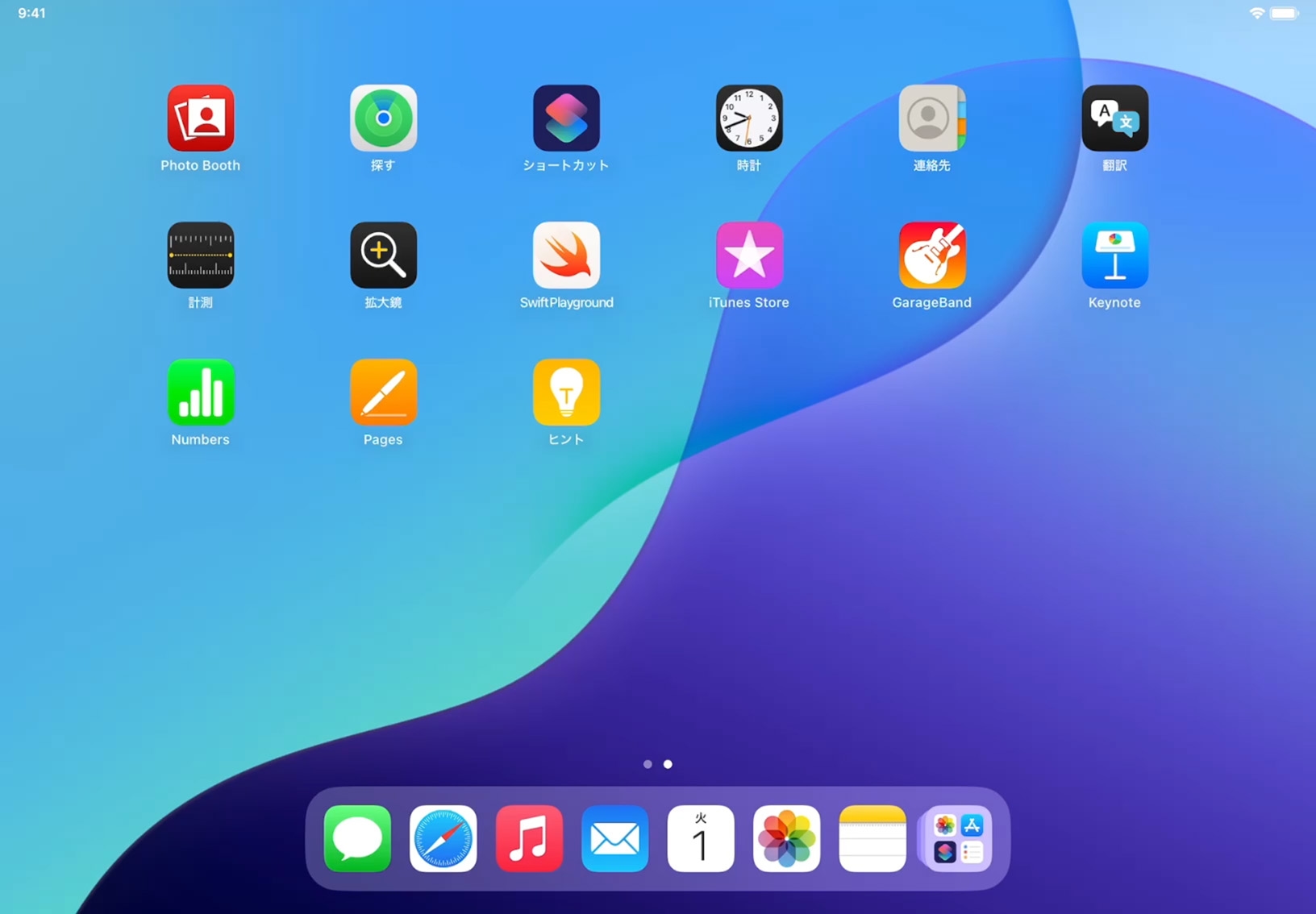 ホーム画面を表示しましょう。画面の下端から上にスワイプします。次に左にスワイプして、ホーム画面のほかのページにあるアプリを表示します。