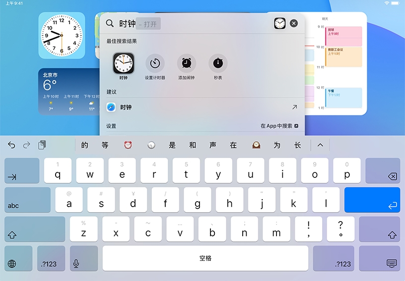 使用搜索功能。从主屏幕中间向下拖动,输入“时钟”,然后在搜索结果中轻点“时钟”app