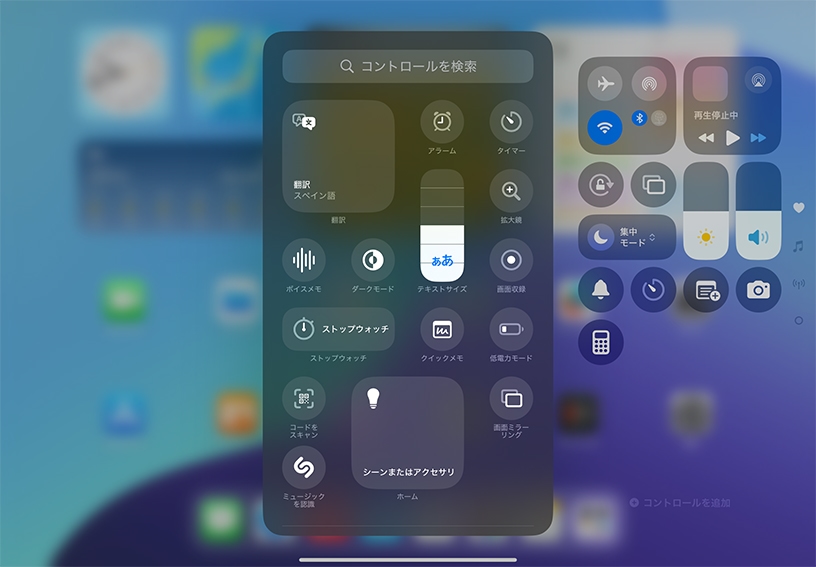 コントロールセンターを開きます。画面の右上から下にスワイプしてください。画面の右端にあるアイコンを下にスワイプすると、特定のコントロールのグループに移動できます。