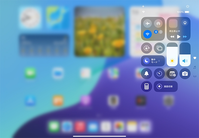 iPadをロックしたまま、コントロールセンターを開いてタイマーをセットしてみましょう。ロック画面からコントロールセンターを開くことができます。
