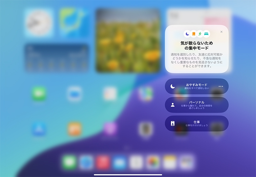 通知音と着信音を一時的に消してみましょう。「集中モード」をタップし、次に、「おやすみモード」をタップします。「おやすみモード」