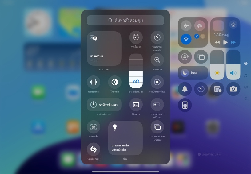 เปิดศูนย์ควบคุม ปัดลงจากขอบด้านบนขวาของหน้าจอ คุณสามารถข้ามไปที่กลุ่มตัวควบคุมที่ต้องการโดยการปัดลงผ่านไอคอนต่างๆ บนขอบด้านขวาของหน้าจอ