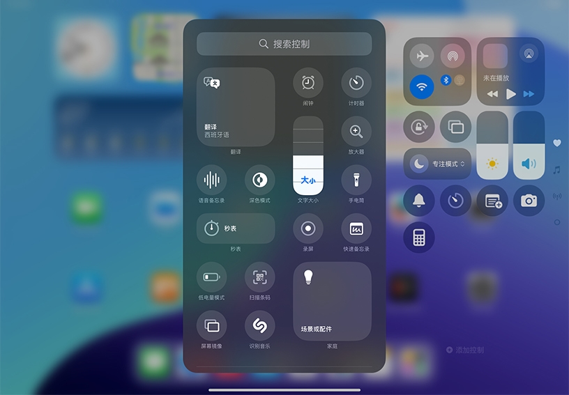 通过 iPad 上的“控制中心”,你可以即刻访问各类实用控制功能。例如,为课堂活动设定计时器,或者在小组讨论期间将声音和提醒设为静音。