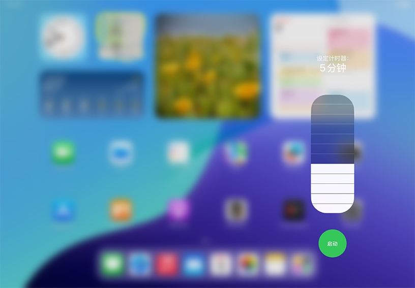无需解锁 iPad,即可快速访问“控制中心”来设置计时器。从锁定屏幕打开“控制中心”。