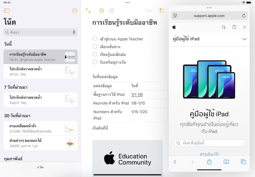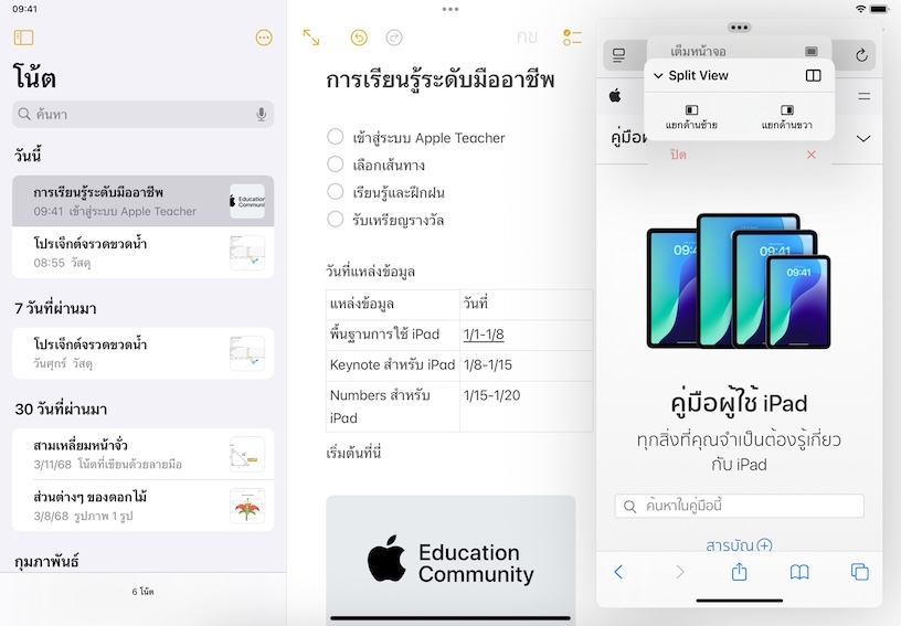 Dock และแถบสลับแอปช่วยให้คุณสลับการใช้งานระหว่างแอปต่างๆ ได้อย่างรวดเร็ว คุณสามารถเปิด 2 แอป หรือ 2 หน้าต่างจากแอปเดียวกันได้ด้วย Slide Over และ Split View เพื่อเพิ่มความเร็วให้การทำงาน เช่น การจดโน้ตระหว่างอ่านหนังสือ หรือเปรียบเทียบข้อความในเอกสาร 2 ฉบับ