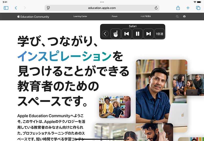 画面全体のテキストをiPadに読み上げてもらいましょう。ウェブページの一番上から2本の指で下にスワイプすると、ページが読み上げられます。画面上のコントロールを使うと、読み上げ速度を調節できます。