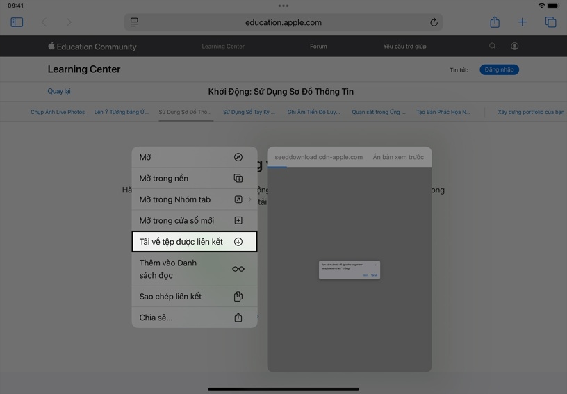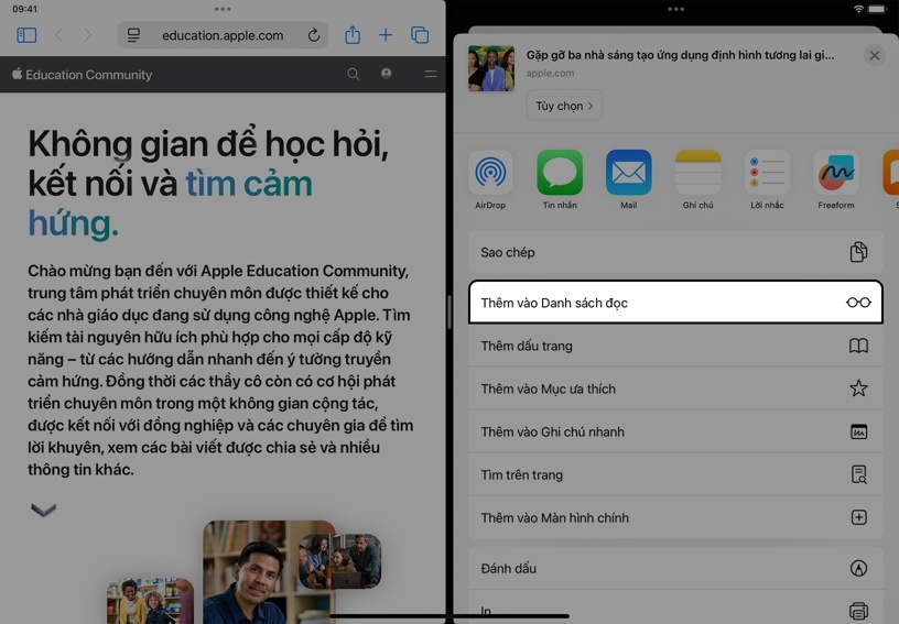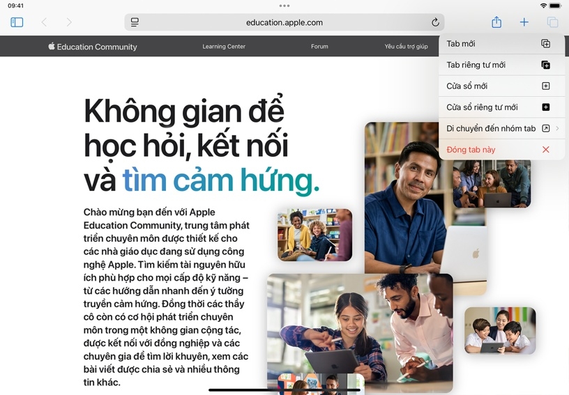 Mở hướng dẫn này trên iPad trong khi xem một trang web khác. Chạm và giữ liên kết này, sau đó chạm vào Cửa Sổ Mới để chia màn hình và xem một bài viết mới về Apple Education trong trình duyệt thứ hai.