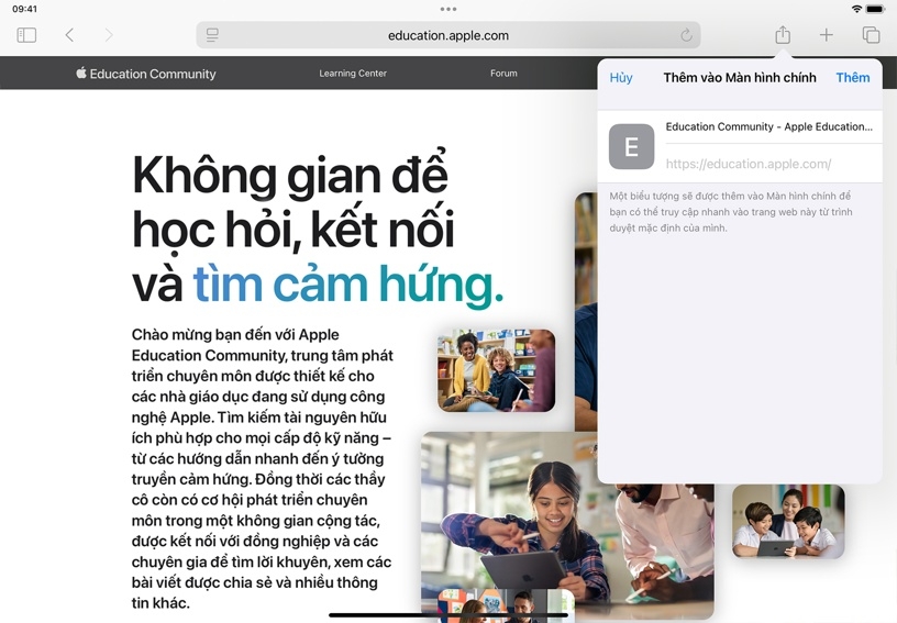 Thêm biểu tượng cho Apple Education Community vào Màn hình chính. Chạm vào Chia Sẻ