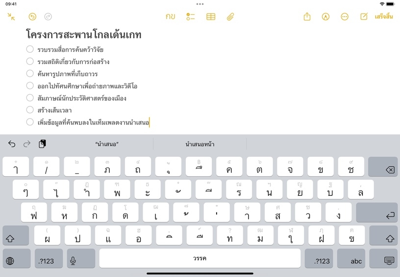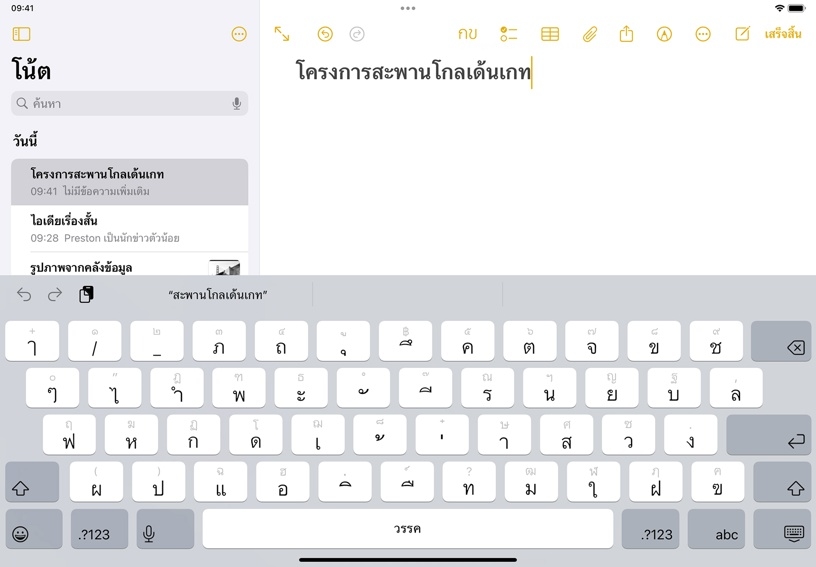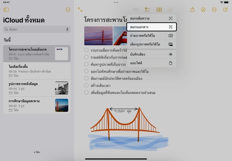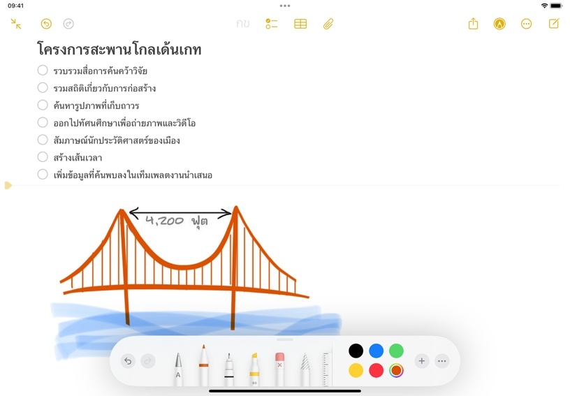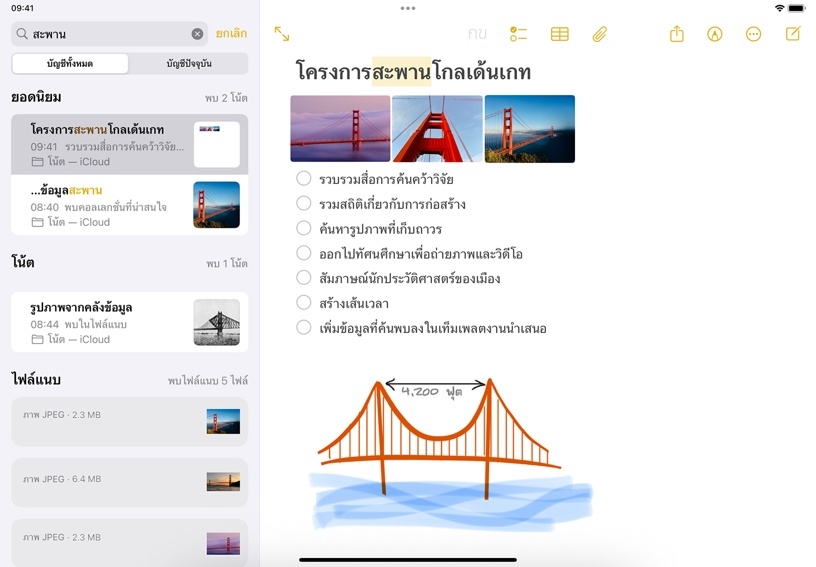 ใช้แอปโน้ตเพื่อจดสิ่งที่คุณนึกขึ้นได้ สร้างรายการตรวจสอบ ร่างไอเดีย และจัดระเบียบแหล่งข้อมูลการเรียนรู้ คุณยังใส่ภาพและภาพสเก็ตช์ แก้สมการ ทำเช็คลิสต์ หรือแม้แต่สแกนเอกสารได้ด้วย และเมื่อใช้ร่วมกับ iCloud โน้ตของคุณก็จะเป็นปัจจุบันอยู่เสมอบนอุปกรณ์ทุกเครื่อง ไม่ว่าคุณจะอยู่ที่ไหนก็ตาม