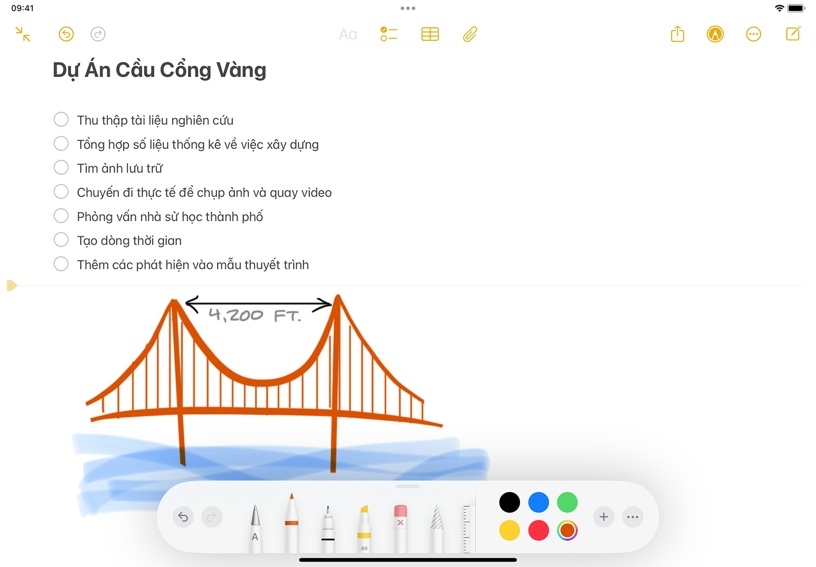 Thêm bản phác thảo. Trong ghi chú, hãy bắt đầu vẽ hoặc viết bằng Apple Pencil. Hoặc để vẽ hoặc viết bằng ngón tay, hãy chạm vào Bản Vẽ