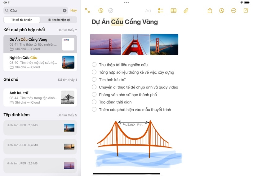 Tìm kiếm Ghi Chú. Khi danh sách ghi chú hiển thị, hãy vuốt xuống trên danh sách, sau đó chạm vào trường tìm kiếm. Bạn có thể tìm kiếm văn bản được đánh máy hay viết tay. Bạn cũng có thể sử dụng một trong các gợi ý tìm kiếm như “Ghi Chú Có Bản Vẽ”.