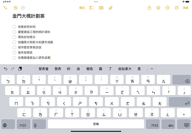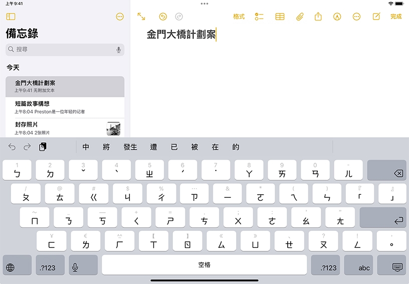 。備忘錄的第一行會設為備忘錄標題。點一下「完成」即可儲存備忘錄。