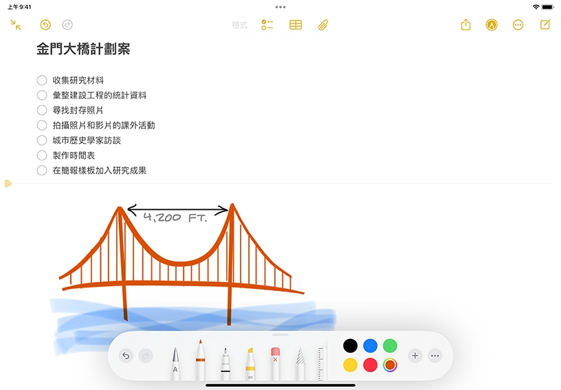 加入速寫。運用 Apple Pencil 在備忘錄中繪圖或書寫。你也可以點一下「繪圖」