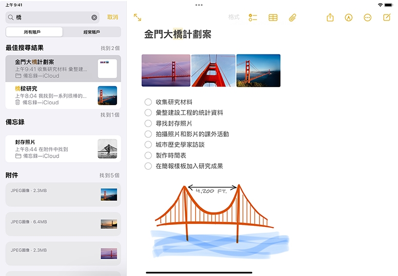 使用「備忘錄」app 記下想法、製作檢查表、草繪構想,並整理學習資源。你可以加入影像和素描、計算算式、製作檢查表,甚至還能掃描文件。透過 iCloud,無論你在哪裡,都能透過任何裝置取得最新的備忘錄。