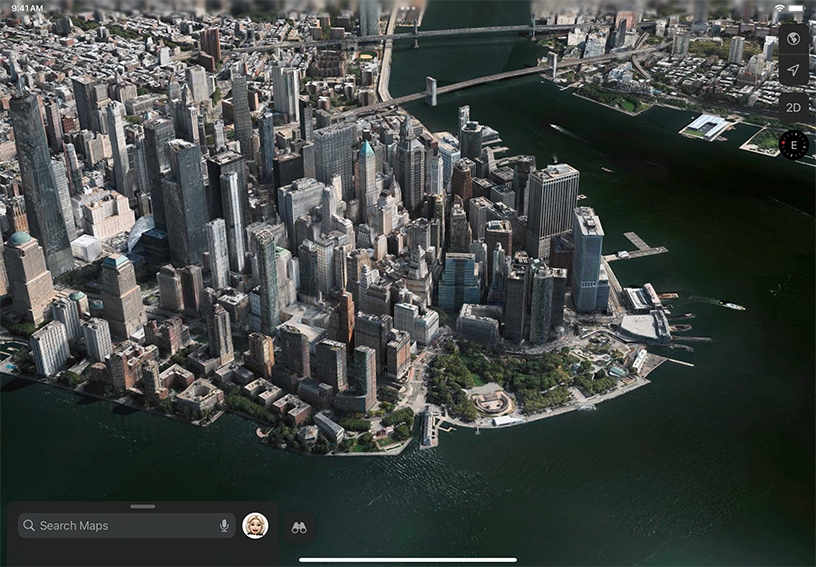 Go on a walking tour of a city. Find a 3D city, tap Flyover, then walk around the room while moving and pointing iPad in the direction you want to view.