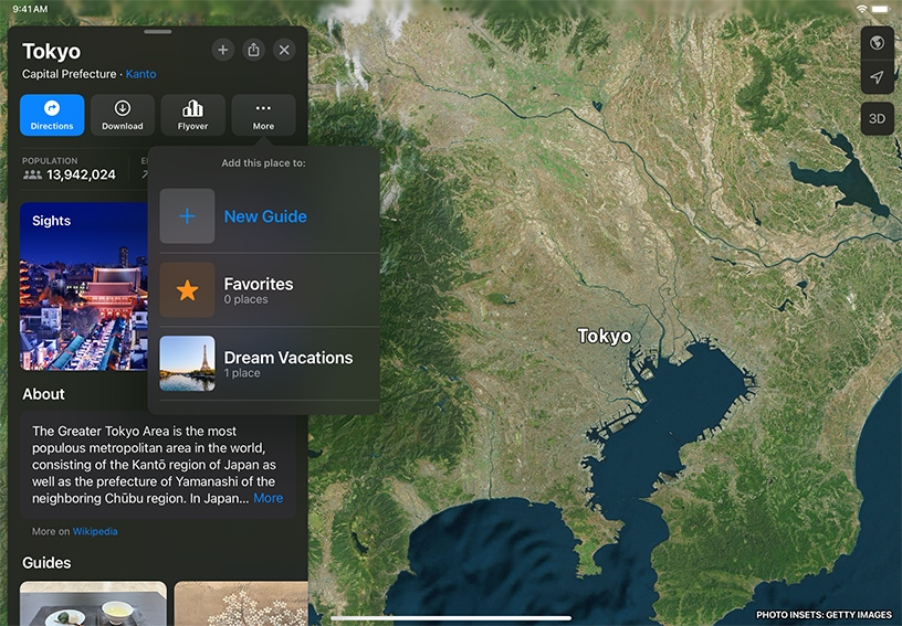Take a Flyover tour of a city or monument related to a culture you’re studying. Zoom out to view a country, look for 3D next to a city, then tap it to explore.