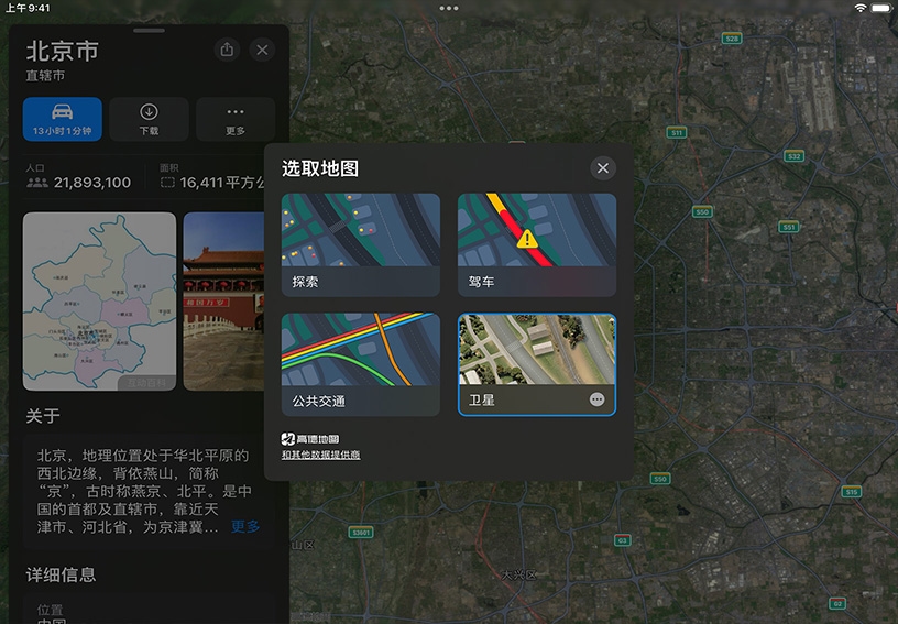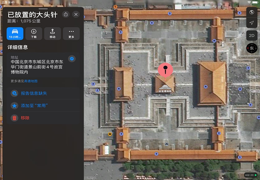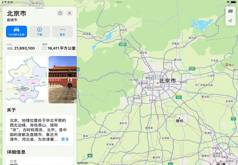 搜索某个位置。打开“地图”,轻点搜索栏,然后输入“北京”。轻点“关闭”