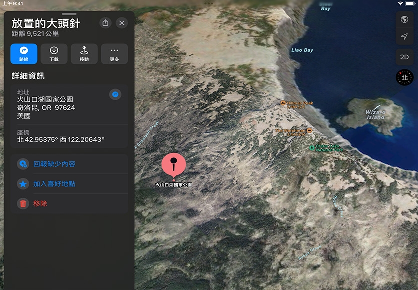 瀏覽。點一下「3D」,然後用兩指在地圖上分開或靠攏,以放大或縮小。在地圖上拖移即可到處移動。