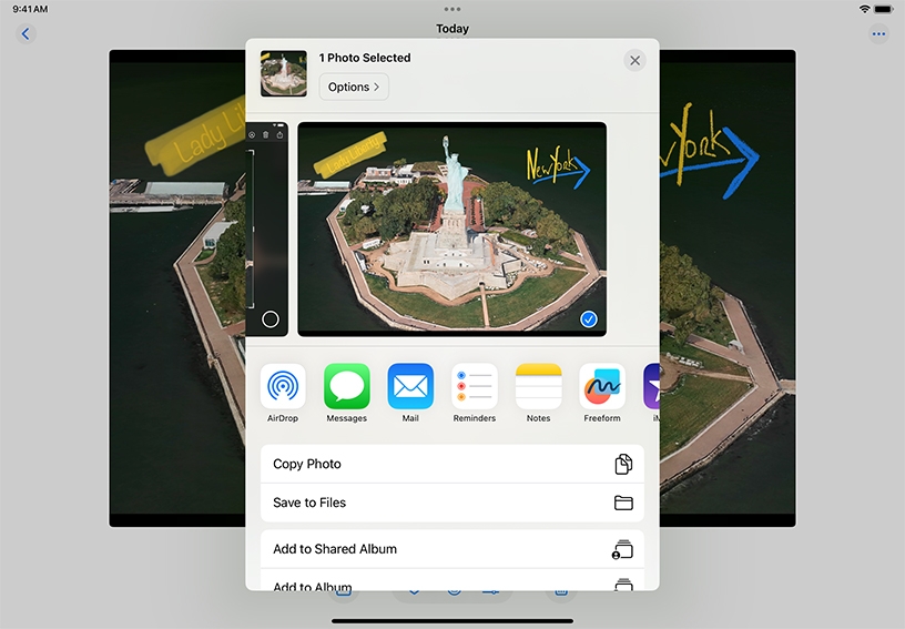 Save and share your screenshot. Tap Done, then Save to Photos. In Photos, open the screenshot, tap Share