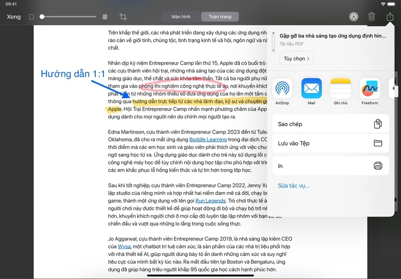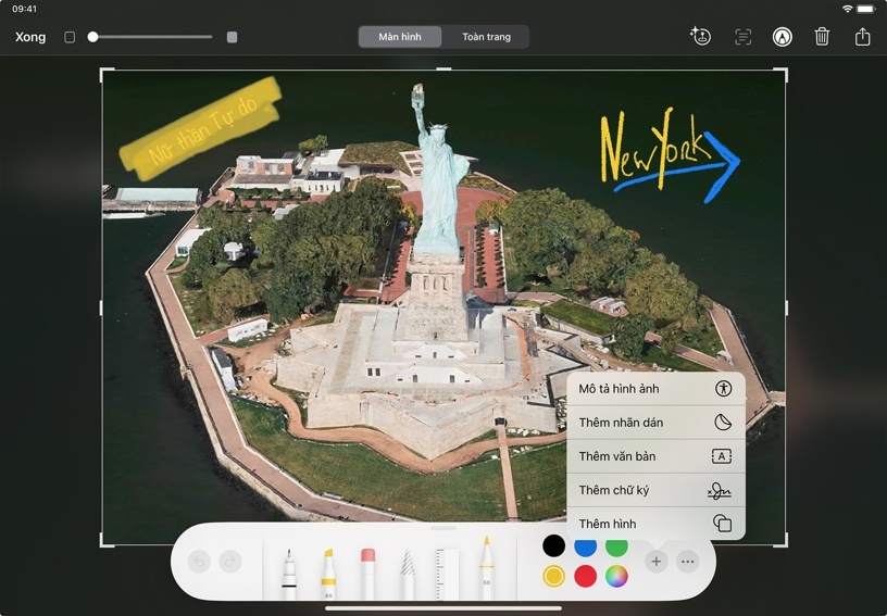 Sử dụng công cụ Đánh Dấu để thêm văn bản hoặc bản vẽ. Chạm vào Thêm
