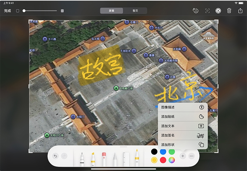 使用“标记”工具,可添加文字或绘图。轻点“添加”