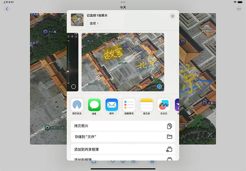 存储并共享截屏。轻点“完成”,然后轻点“存储到‘照片’”。在“照片”中,打开截屏,轻点“共享”