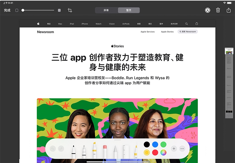 对屏幕上的内容截屏,然后使用“标记”来强调重点。也可以实时录制屏幕,制作教学视频。之后,可使用“隔空投送”、“邮件”或“信息”将截取的内容共享给同事,或者将截屏存储到“照片”,方便将其融入学习项目。