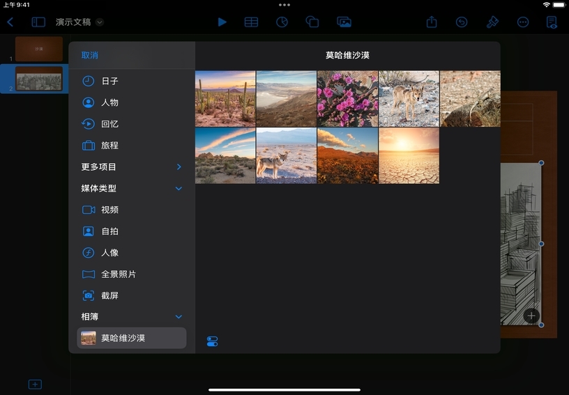 替换占位符图像。轻点占位符图像上的“媒体占位符”