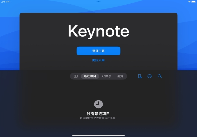 點一下簡報管理程式中的「選擇主題」,打開主題選擇器。