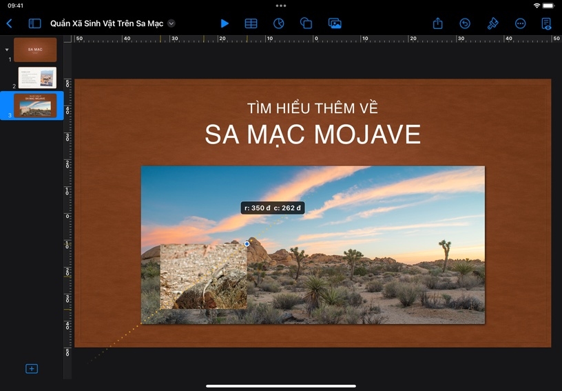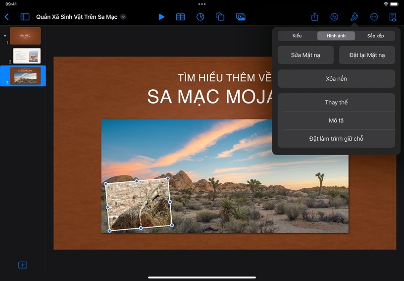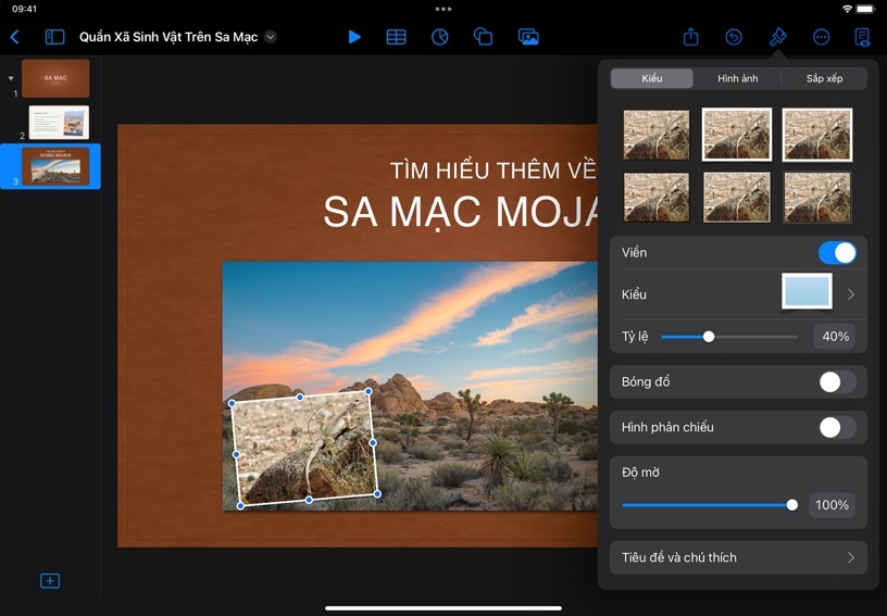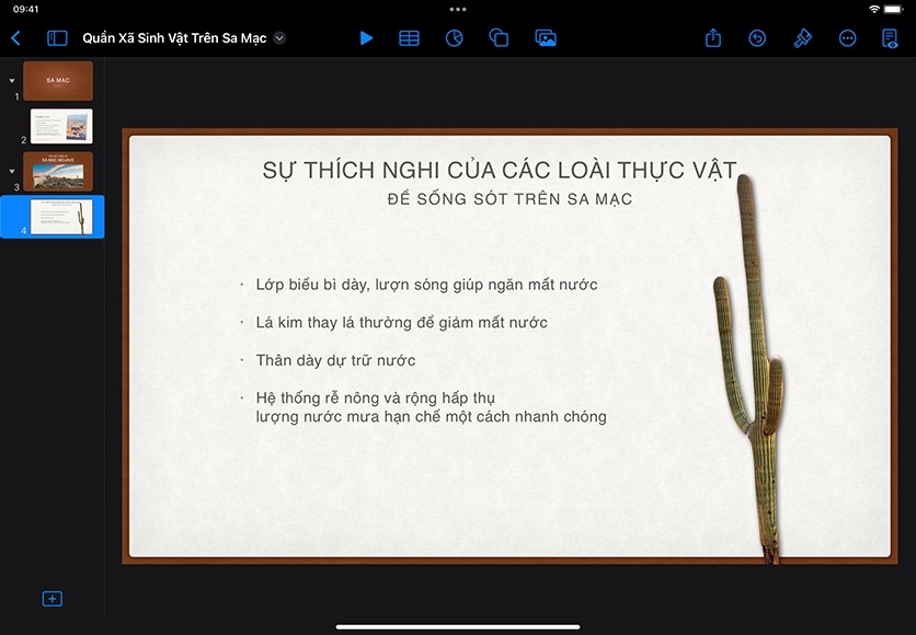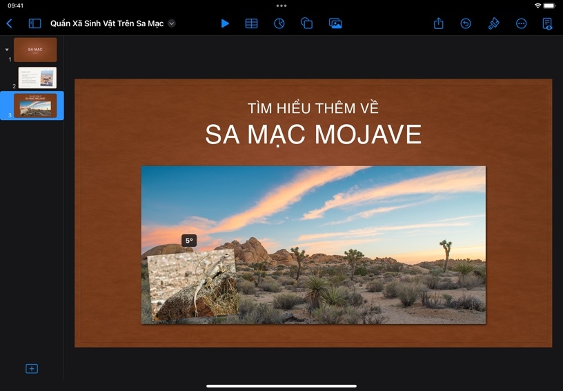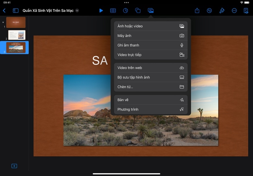 Bạn có thể thêm ảnh mình chụp, ảnh chụp màn hình hướng dẫn, cũng như hình ảnh đã lưu từ web vào trang chiếu bất kỳ. Vì bài thuyết trình là một phương tiện trực quan, hãy cân nhắc cách để truyền đạt ý tưởng qua hình ảnh thay vì từ ngữ.