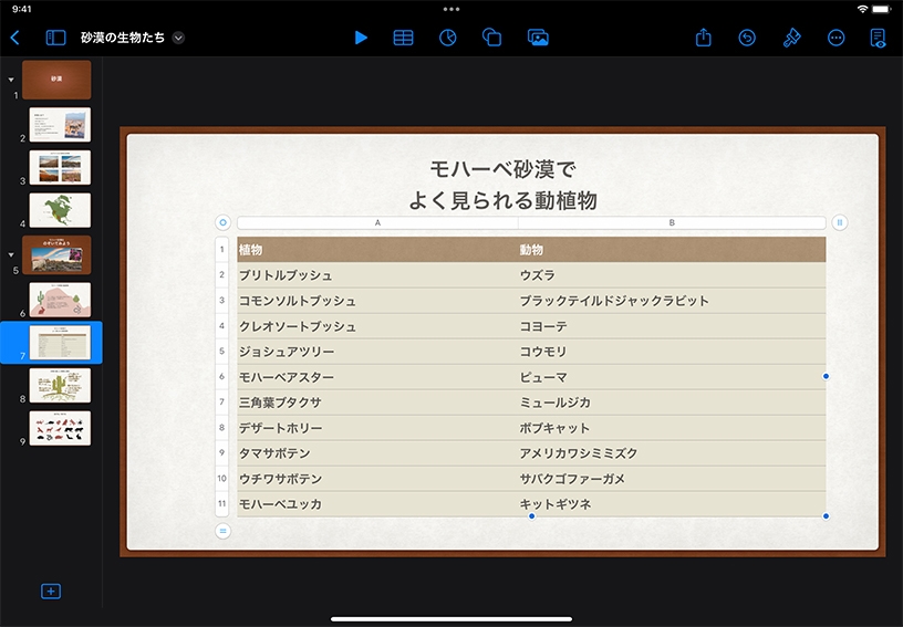 表を使うと、情報を行と列に整理して、わかりやすく伝えることができます。文章の構成要素、実験室での実験結果、Swiftコードのサンプルなど、様々なものを表にまとめてみましょう。