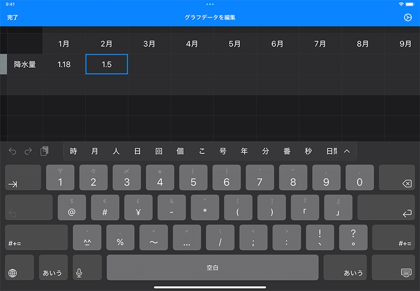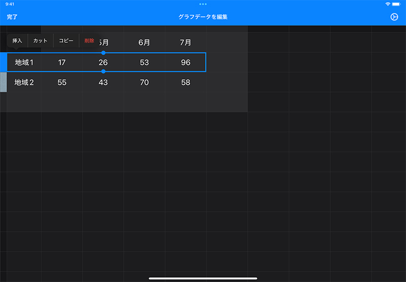 「データを編集」をタップして、グラフのデータを変更してみましょう。