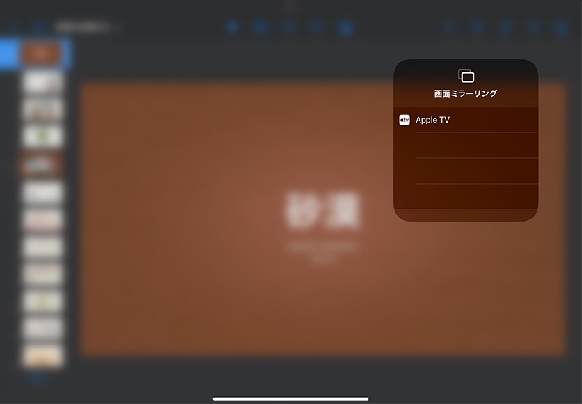デバイスを外部ディスプレイ、プロジェクタ、Apple TV(AirPlay経由)に接続して、プレゼンテーションを別のディスプレイに表示してみましょう。接続先の画面にはスライドが表示され、iPadには発表者用の画面が表示されます。