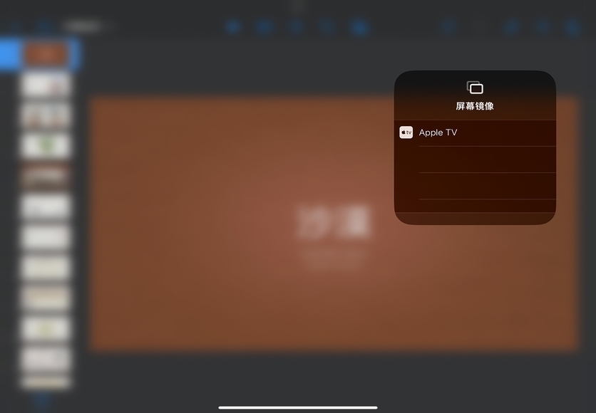 要在单独的屏幕上显示演示文稿,可用隔空播放,将你的设备连接至外部显示器、投影仪或 Apple TV。连接成功后,幻灯片将在外接屏幕上播放,而演讲者视图则会显示在你的 iPad 屏幕上。