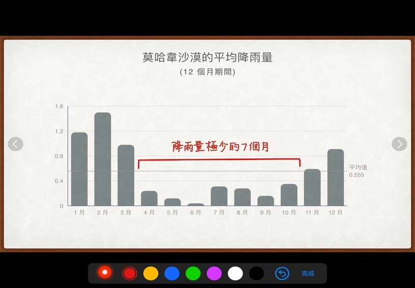 發表的同時在幻燈片上繪圖。點一下並按住幻燈片,以顯示繪圖工具。選擇顏色,然後使用手指來重點標示螢幕上的重要文字或影像區域。