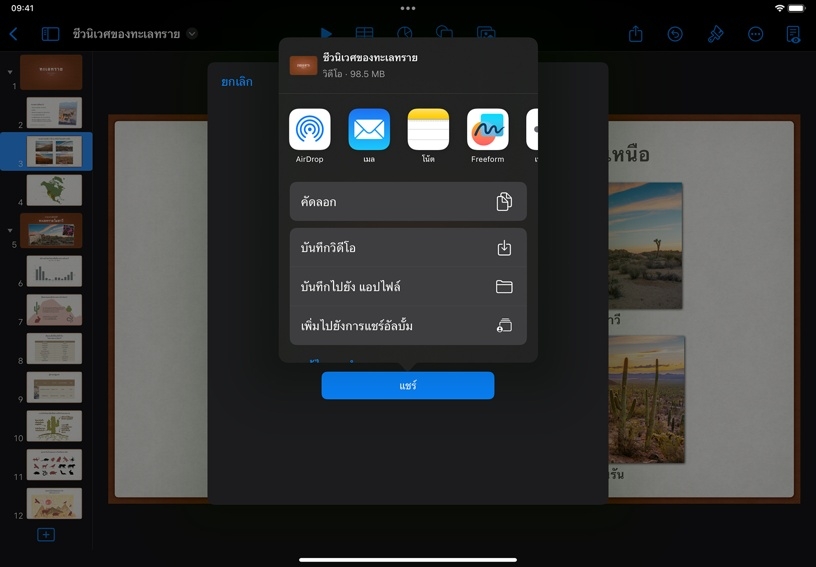 ส่งออกงานนำเสนอ โดยแตะ "เมนูการทำงาน"