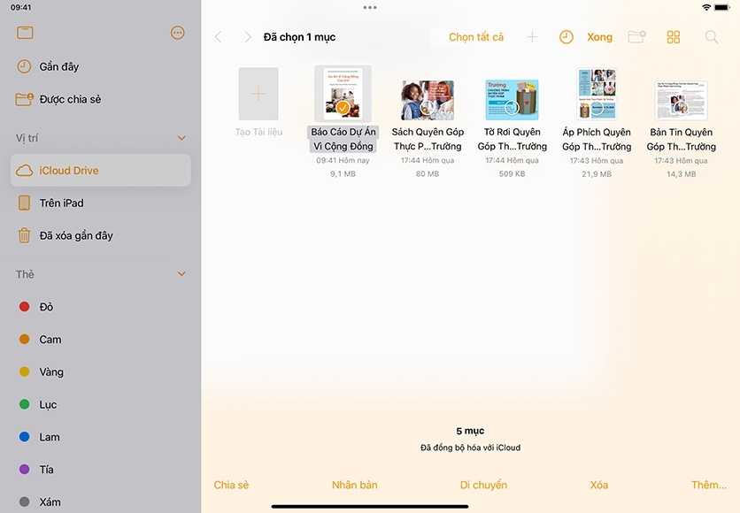 Để đóng tài liệu và quay lại trình quản lý tài liệu, hãy chạm vào Quay Lại