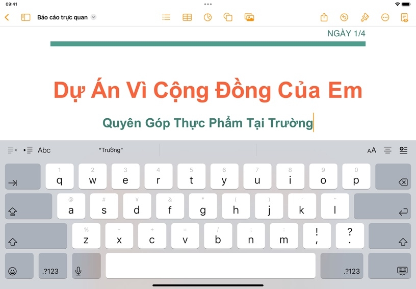 Thay thế văn bản giữ chỗ. Chạm vào văn bản giữ chỗ rồi nhập nội dung của bạn. Khi bạn hoàn tất, hãy chạm vào Ẩn Bàn Phím