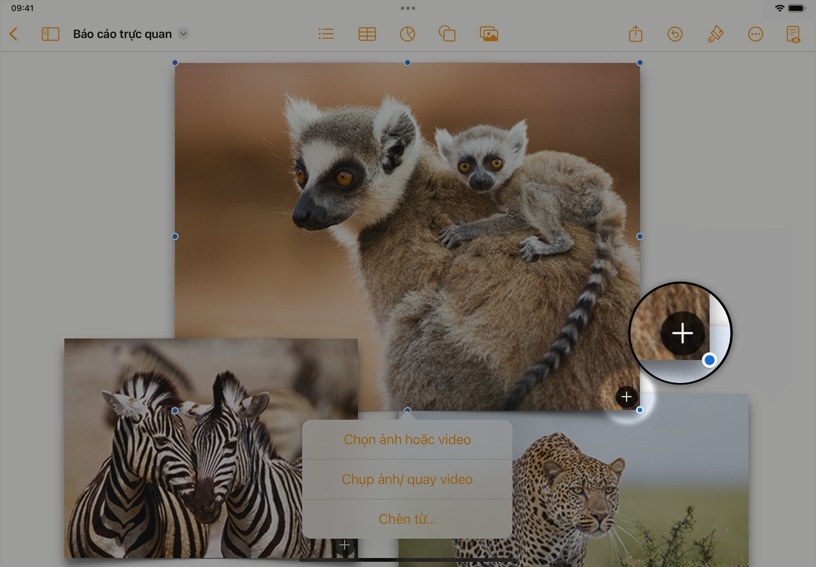 Thay thế hình ảnh giữ chỗ. Chạm vào Trình Giữ Chỗ Phương Tiện