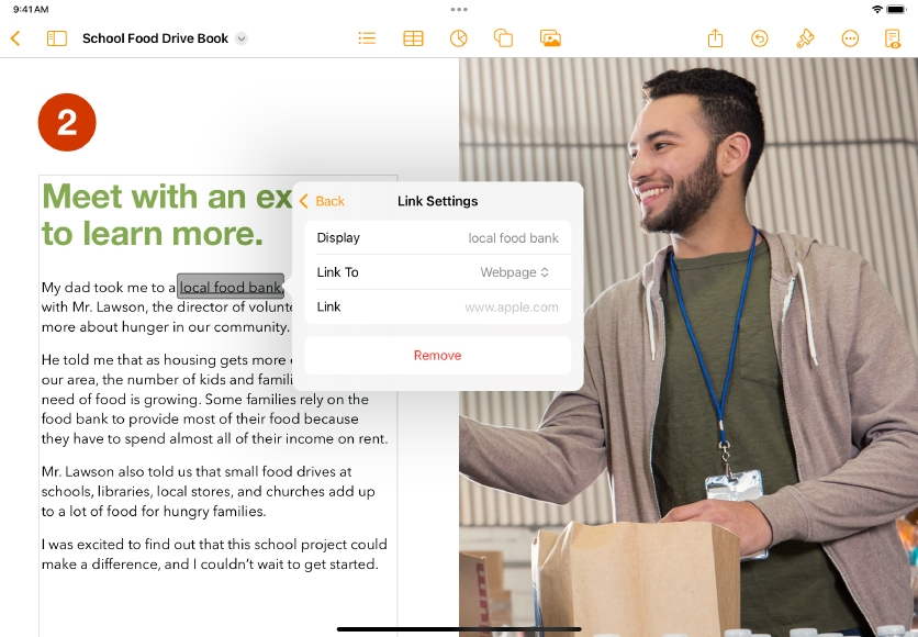 To make your documents more interactive, you can add links to words or phrases that your readers can tap or click to open a webpage.