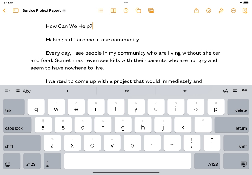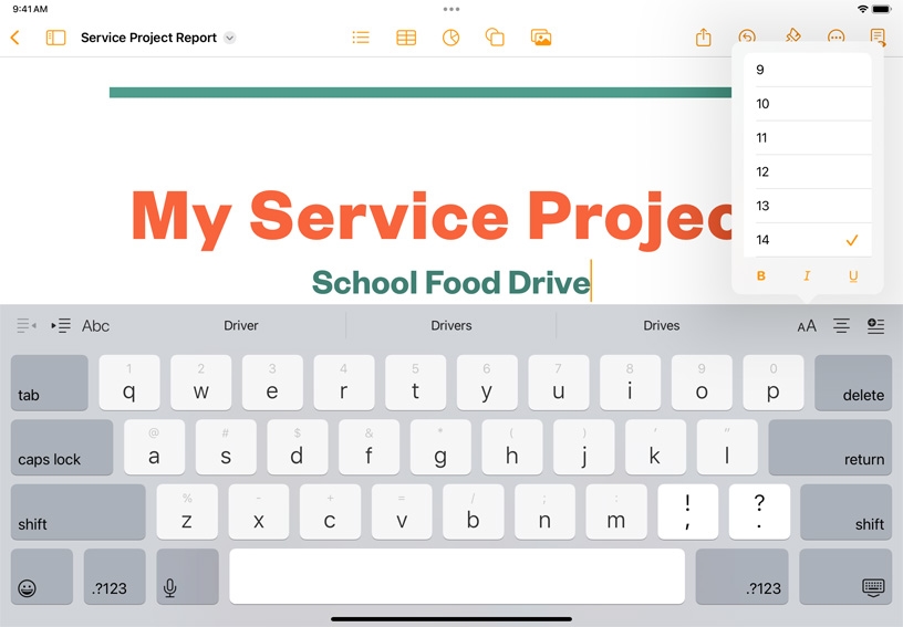 To quickly change font, font size, and other basic formatting, you can use the shortcut bar above the keyboard.