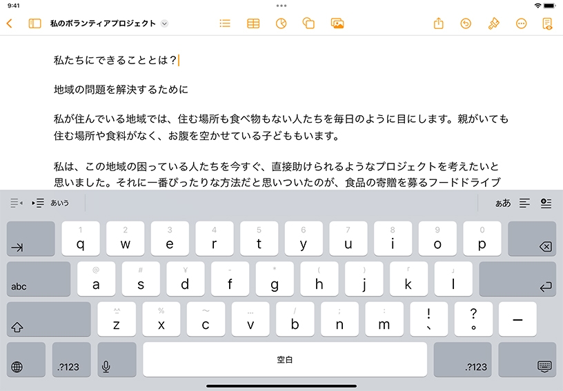 段落にフォーマットを適用してみましょう。段落のどこかをタップするか、複数の段落を選択して、フォーマットボタンをタップしてください。