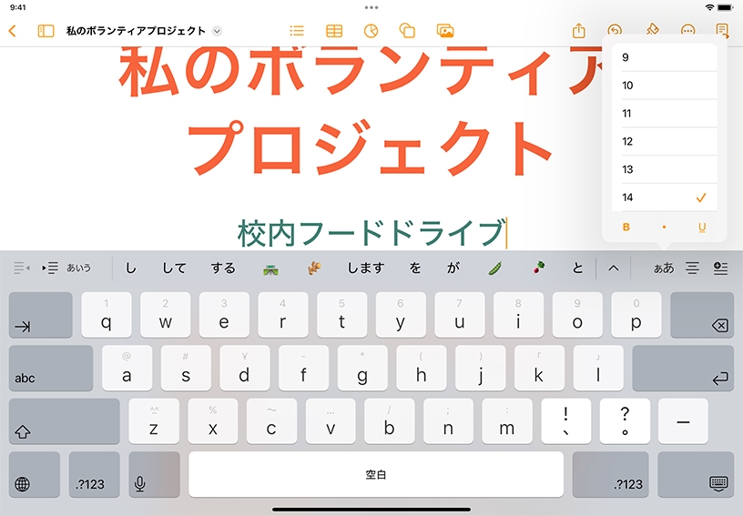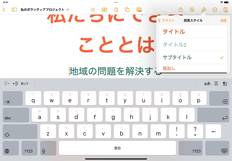 現在の段落スタイルをタップして、表示されたメニューから新しいスタイルを選択してください。