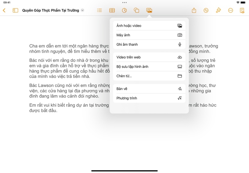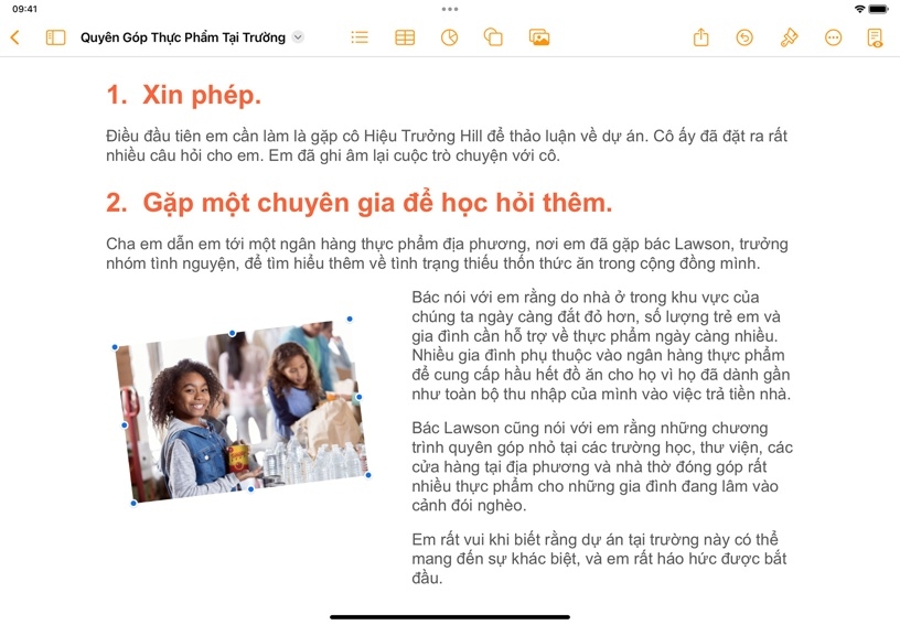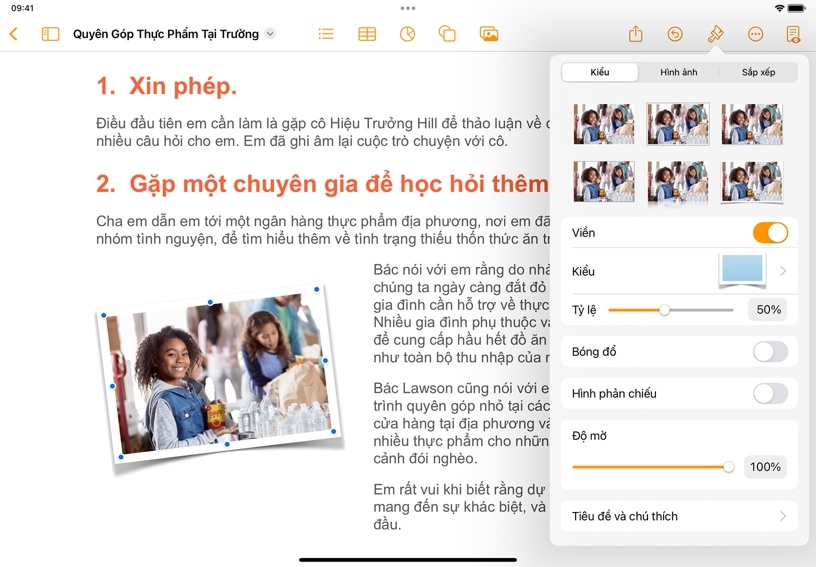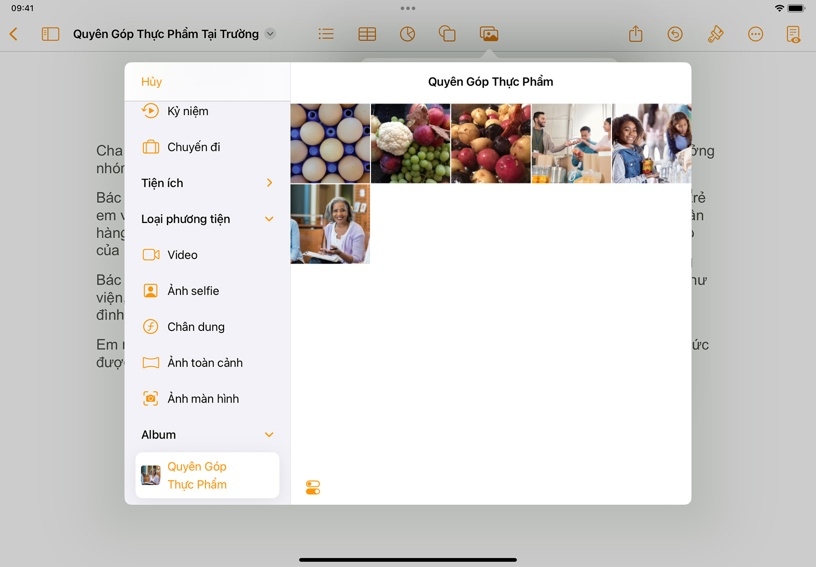 Tìm hình ảnh bạn muốn sử dụng trong thư viện, rồi chạm để thêm ảnh đó vào trang.